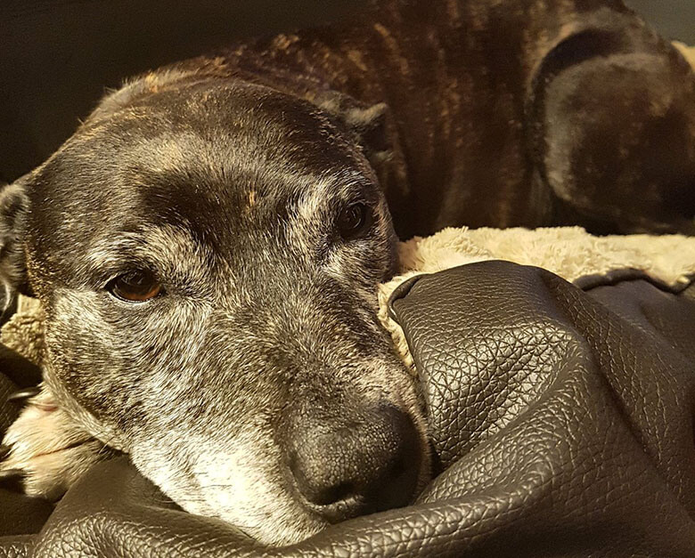Named Millie, the 12-year-old dog was rescued by Bossum’s dad from a shelter in England four years ago.