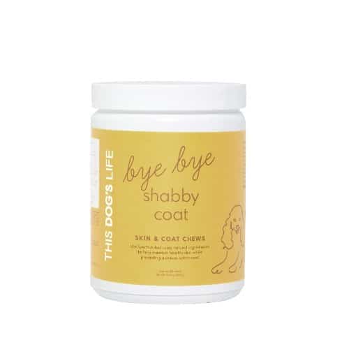 Bye Bye Shabby Coat nourishes your dog’s skin and coat from the inside out. Veterinarian formulated and using powerful natural ingredients, including healthy omegas, salmon oil, and vitamin E, our chews help heal dry, itchy, irritated skin, while also promoting a shinier and softer coat. All our supplements are proudly manufactured in the USA.